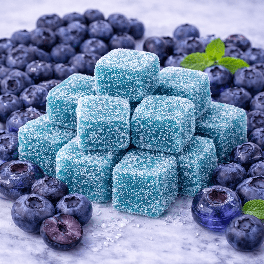 Discover the perfect treat with our Blueberry Candy Hybrid Square Gummy 250mg pc. Experience the ultimate blend of sour and sweet today!